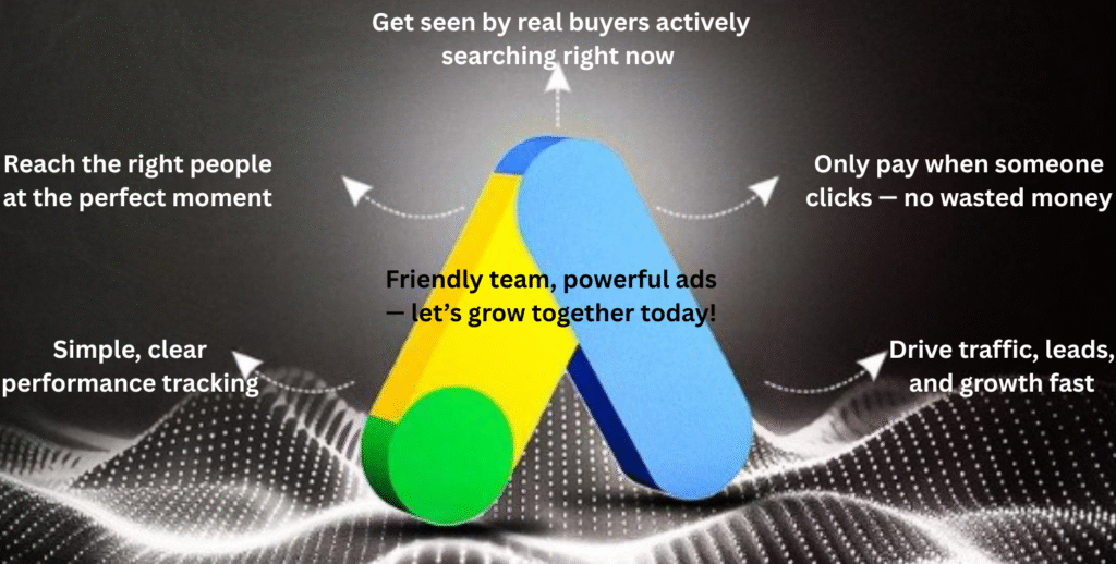 Google Ads is an online advertising platform by Google that allows businesses to display ads on Google’s search engine, YouTube, websites, and apps. With keyword targeting, audience segmentation, and location-based ads, it helps brands reach potential customers when they’re searching or browsing online. You only pay when users click or interact with your ads — making it a powerful, cost-effective way to boost visibility, generate leads, and drive conversions for businesses of all sizes.